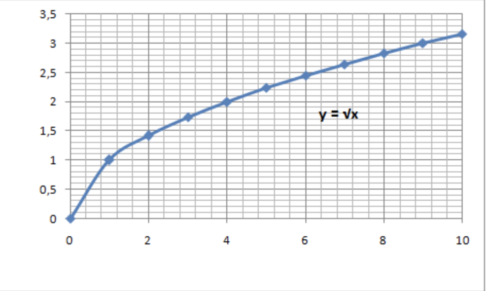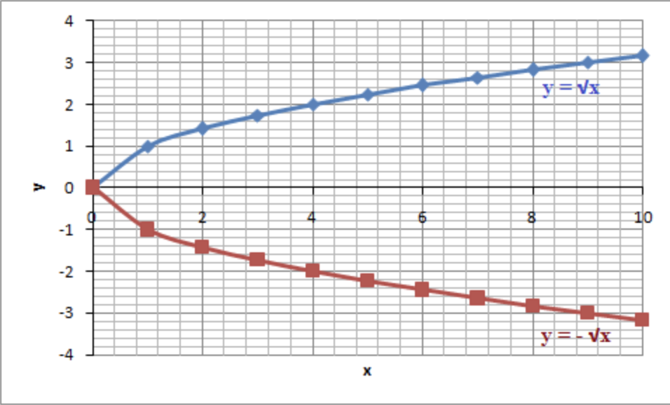 y=√x